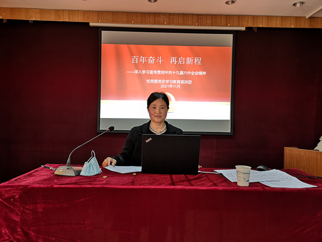 12月13日,校党史学习教育宣讲团成员、离退休党工委书记邹伶俐在离退休人员活动中心报告厅,以网络直播的形式,为全体离退休党员群众作《百年奋斗 再启新程》专题宣讲,带领离退休同志深入学习党的十九届六中全会的议程及重大意义、《中共中央关于党的百年奋斗重大成就和历史经验的决议》的内容及重大创新,深刻领悟党的十九届六中全会精神,号召全体离退休同志要认真学习贯彻落实党的十九届六中全会精神,并结合党的十九届六中全会精神学习,为党和人民事业增添正能量,全面助力学校高水平大学和一流学科建设。离退休党工委委员参加了现场学习。