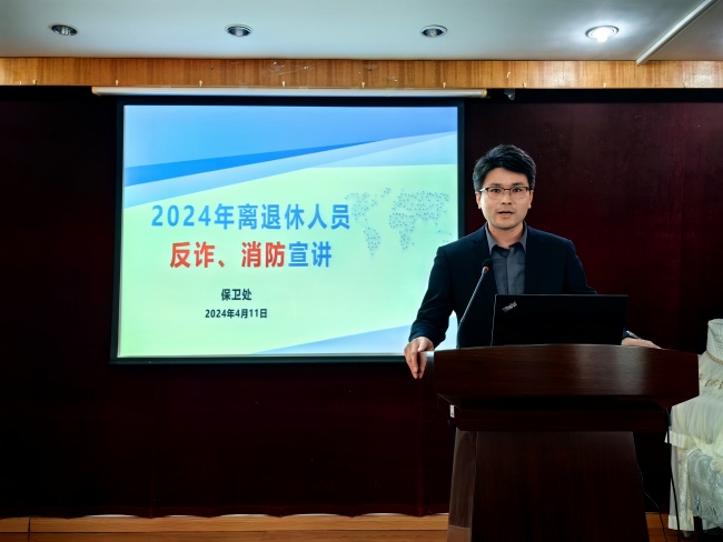 为增强离退休人员消防安全和防诈骗意识,筑牢防诈骗防线,杜绝安全事故的发生,2024年4月11日,离退休工作处与保卫处在离退休人员活动中心为老同志联合举办了消防安全与反诈宣传讲座。