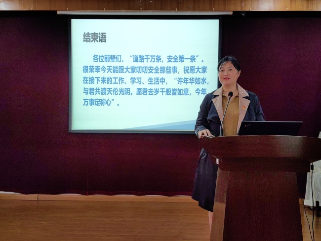 保卫处副处长刘少华针对老年人居家生活的特点,通过图片视频和生动详实的案例,介绍了常见的火灾隐患以及识别方法,详细讲解了如何预防和应对居家火灾;结合近期发生的电信网络诈骗典型案例,深入浅出地分析了老年人易受骗的类型,重要阐述了防止电信网络诈骗的预防、识别和应对方式。离退休工作处邹伶俐处长再三叮嘱老同志,安全无小事,责任大于天,希望大家时刻绷紧安全防范之弦,牢固树立安全意识,尽量避免不必要的人身伤害和财产损失。