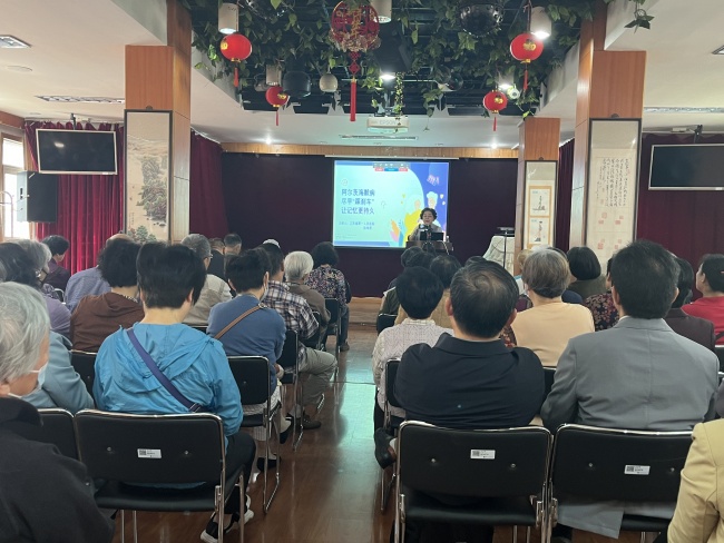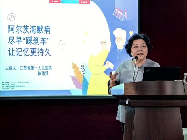 5月9日上午,我校离退休健康大讲堂报告会在离退休人员活动中心举办。会议采用线上线下同步方式进行。特邀专家原南京医科大学第一附属医院、江苏省人民医院老年医学科主任医师陈伟贤教授为离退休人员做了题为“阿尔茨海默病,尽早‘踩刹车’让记忆更持久”的科普报告。近百位离退休人员参加了现场报告会,我校和省直单位及兄弟院校部分离退休人员通过点击网络链接实时收看了报告会的全程直播。会议由离退休党工委书记、离退休工作处处长邹伶俐主持。