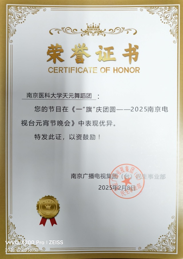 2月8日,由南京广电集团主办、南京电视台十八·生活频道承办的“一‘旗’庆团圆”——2025南京电视台元宵节晚会暨优秀节目颁奖典礼,在南京广电集团1500平米演播厅顺利举办并圆满落下帷幕。我校天元舞蹈团老同志的藏族舞《再唱山歌给党听》先后通过南京电视台的海选和晋级赛,成功参加了本次元宵节晚会演出。