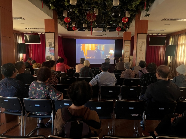 活动中心三楼,离退休党工委组织离退休老同志开展爱国主义观影活动。影片《万里归途》讲述了努米亚共和国暴发战乱时,外交官们赤手空拳,穿越战火和荒漠,面对反叛军的枪口,带领同胞成功撤侨的故事。现场观影老同志纷纷感叹自己生长在和平的华夏大地是多么幸运和幸福。他们为祖国的强大感到无比自豪,也深深为中国外交官的强烈使命与奉献精神充满敬意。