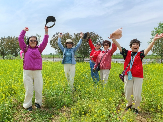 在田园风情不老村,老同志们漫步在乡间小道,沐浴着温暖阳光,欣赏着烂漫春花,纷纷拍照记录下这如诗如画的美景,仿佛把自己置身于一幅古朴的田园画卷。沿途展示的传统农耕工具,每一件都承载着先辈们的智慧与汗水,诉说着过去的农耕故事,大家不时驻足体验,欢声笑语不绝于耳。