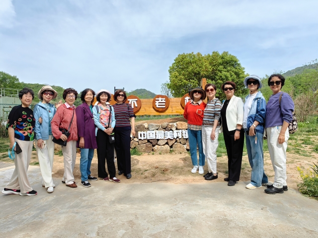 4月17日,我校退教协组织了40余名老同志赴不老村、纪念馆和生态农场春游踏青。