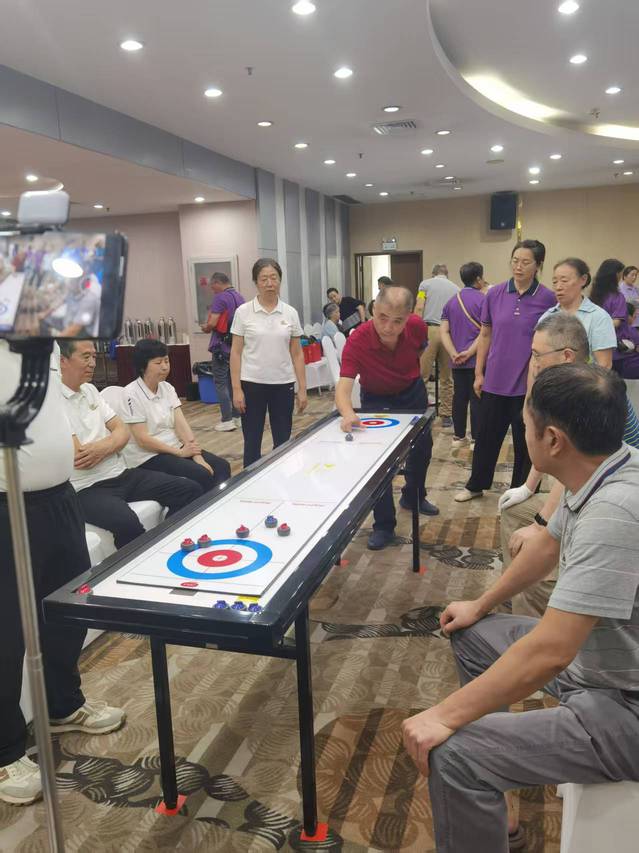 桌上冰壶球运动发力注重“巧劲”,兼具益智与健身的功效,具有极高的运动技巧性和趣味性。为了在此次活动中取得好成绩,老同志们克服困难,积极训练,始终保持着高度的热情与专注,认真钻研战术,不断磨合默契,在一次次的练习中努力提升自己的技术水平。活动中,参赛选手们精神抖擞地步入赛场。面对强劲的对手,他们毫不畏惧,凭借着扎实的技术和默契的团队协作,在比赛中稳扎稳打。每一次投壶,他们都全神贯注,精准控制力度与方向;每一次战术讨论,大家都积极交流,根据场上局势迅速做出调整。在激烈的角逐中,他们充分展现出南医大离退休教职工积极向上、勇于拼搏的精神风貌。