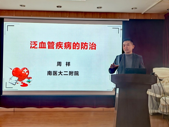 12月11日,我校离退休人员健康大讲堂报告会在离退休活动中心报告厅成功举办。会议采用线上线下同步方式进行。特邀南医大二附院心血管中心负责人、心血管内科主任周祥教授为离退休同志做了题为“泛血管疾病的防治”的科普报告。八十余位老同志参加了现场报告会。我校和省直单位及兄弟院校部分离退休人员通过点击网络链接实时收看了报告会的全程直播。会议由离退休党委书记、离退休工作处处长邹伶俐主持。